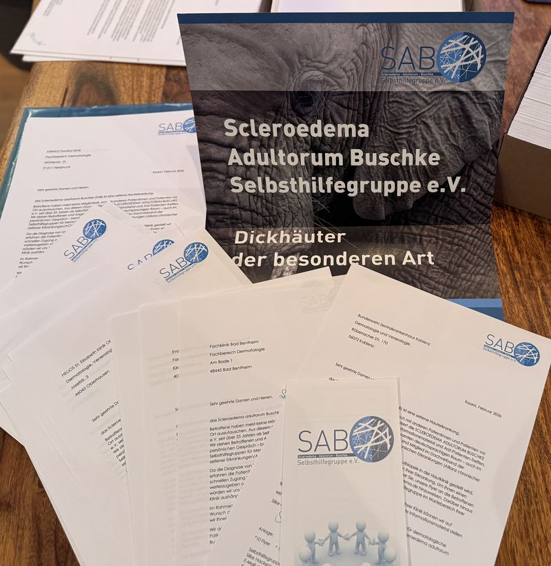 Um das seltene Krankheitsbild des Scleroedema Adultorum Buschke bekannter zu machen haben wir als SAB Selbsthilfegruppe über 100 Kliniken bundesweit angeschrieben.